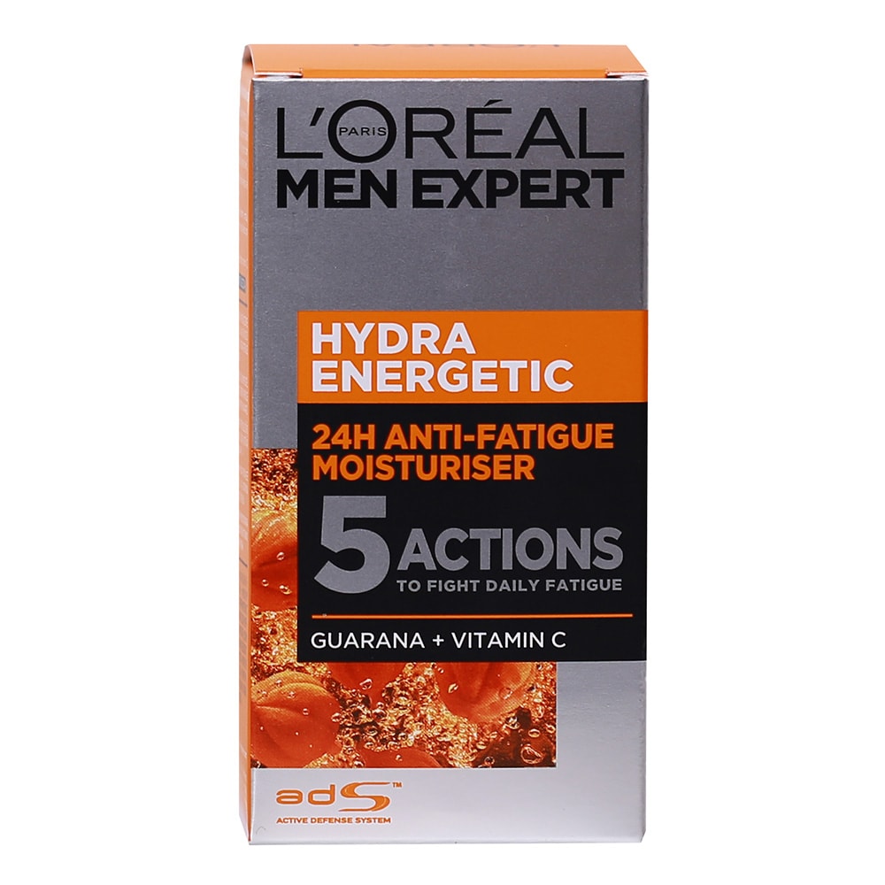 Mitrinošs krēms pret noguruma pazīmēm ar gvarānu un C vitamīnu. Izstrādāts vīriešiem. • Cīnās pret noguruma pazīmēm • Bagātināts ar gvarānu un C vitamīnu • Viegla želejkrēma tekstūra • Samazina skuvekļa izraisīto kairinājumu L'Oréal Men Expert Hydra Energetic mitrinošs krēms pret noguruma pazīmēm ir īpaši izstrādāts vīriešiem ar noguruša izskata ādu. Formula ir bagātināta ar gvarānu, kas pazīstama ar savu stimulējošo spēku, un C vitamīnu, lai nodrošinātu enerģijas devu no rīta līdz vakaram. Formula cīnās pret piecām noguruma pazīmēm: bālumu, tumšajiem lokiem, savilktu ādu, tonusa zudumu un ādas raupjumu. Želejkrēma tekstūra ir īpaši viegla, tā nepadara ādu taukainu un lipīgu. Dermatoloģiski pārbaudīts.
