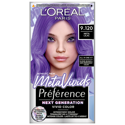 Mūsu nesen apgūtās zināšanas ir ārkārtīgi vērtīgas, ļaujot izveidot jums nākotnes krāsu. Iedvesmojoties no digitālās pasaules, Préférence Metavivids nodrošina īpaši intensīvu toni, kas saglabājas līdz pat divām nedēļām*, pateicoties unikālai daļēji permanentas krāsas formulai. *Krāsas noturība var būt ilgāka vai īsāka par 14 mazgāšanas reizēm atkarībā no sākotnējās matu krāsas un stāvokļa. Krāsa pakāpeniski izzūd laika gaitā.