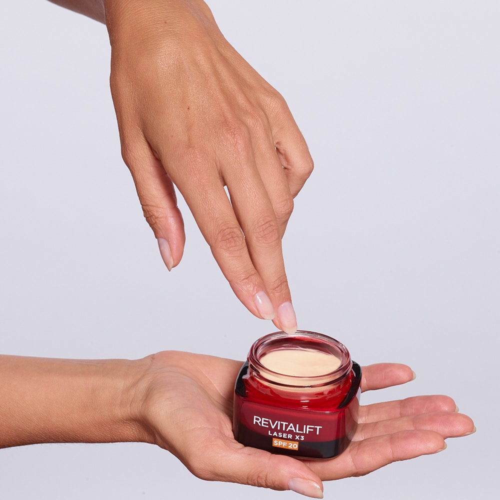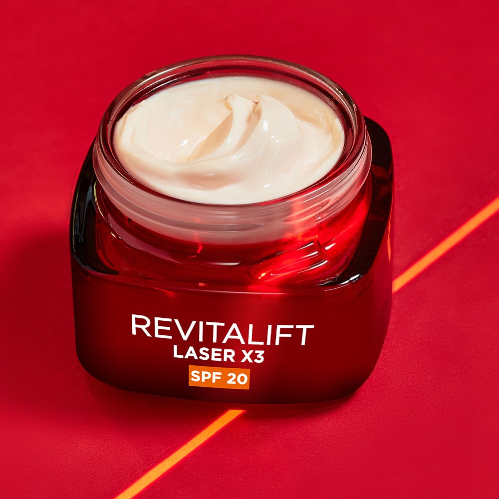 Pēc 40 gadu vecuma šūnu atjaunošanās procesi sāk ievērojami palēnināties, kas veicina izteiktāku grumbiņu parādīšanos un izmaiņas sejas ovālā, ko izraisa ādas tvirtuma zudums. Ādas novecošanos ietekmē arī kaitīgais UV starojums, kas ir atbildīgs par pigmentācijas veidošanos. Revitalift Laser X3 pretnovecošanās krēms ar SPF20 risina šīs iezīmes, nodrošinot intensīvu ādas atjaunošanu. Formula bagātināta ar: